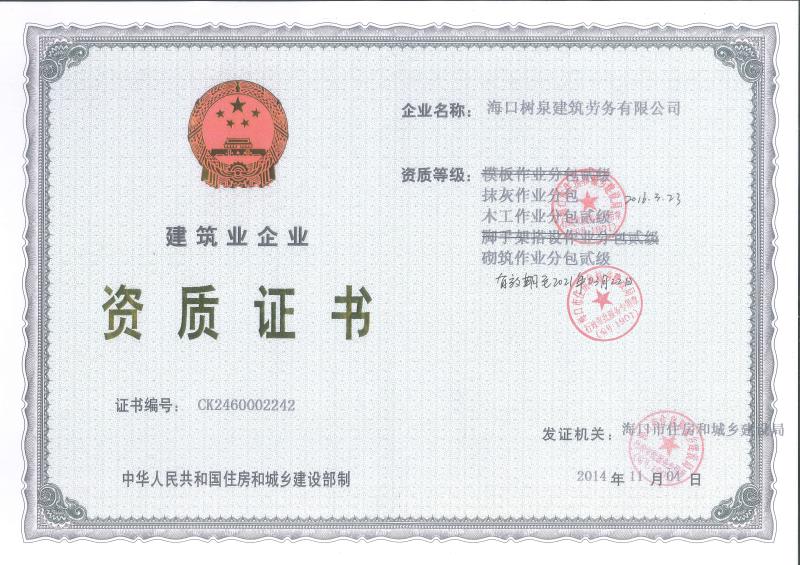 ??跇淙ㄖ趧沼邢薰境闪⒂?011年,公司位于???,其前身是一家專業建筑施工隊,自2004年即開始在海南從事建筑勞務施工。自成立至今,公司已經擁有一支科學管理、質量過硬、能打硬仗,搶工期的專業隊伍。能獨立承擔大中型工業與民用建筑 、室內外裝修、各類機電設備安裝工程。代表工程有海口濱海華庭、三亞時代海岸T01/02/04/05棟高層、合肥東海花園二期、陵水富力灣B區高層、三亞金中海(酒店)、瓊海大印經典花園、??诃h(huán)球海景大酒店(四星級酒店,在建中)、陵水珍珠大廈(五星酒店)、海口萬達廣場、美蘭機場二期。